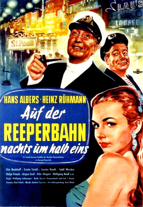 SKU 601 Availability AUF DER REEPERBAHN NACHTS UM HALB EINS (1954) Hans Albers, Heinz Rühmann and Fita Benkhoff, Wolfgang Liebeneiner Be the first to review this product $9.99 Qty: Add to cart Email a friend Question about product? Add to wishlist DetailsExisting reviews St Pauli in Hamburg is the "New Orleans" of Germany and Grosse Freiheit Nr. 7 is located on it's "Bourbon Street". It's a party town, but the characters in the film have changed. Hans Albers is a different Hans. He also has another brother, who now owns the the Hippodrome, played by Heinz Ruhmann, co-run by his girl friend , played by Fita Benkhoff. This different version of the Hans character has come back from the sea to settle in St Pauli. His brother is having problems: no one wants to go to his place anymore; the horse riding is boring to tourists. Hans comes back to help him out with his bar and his accordion. He seems to draw people to Heinz's club. It gets so good, that Heinz seeks a loan from the property owner of St Pauli's night clubs, played by Gustav Knuth, but his associates, one of them played by Fritz Wagner, are a bunch of crooks and he doesn't know this. Heinz has a problem with Hans spending a lot of time with his daughter, who's in love with the son of the property owner. But that's nothing compared to all the problems they're going to have with these crooks! Als der Seemann Hannes Wedderkamp von langer Fahrt nach Hamburg zurückkehrt, begegnet er zum ersten Mal seiner inzwischen erwachsenen Tochter Anni. Diese jedoch wuchs in der Überzeugung auf, dass Hannes' alter Freund Pitter Breuer, der in Hamburg ein schlecht laufendes Hippodrom betreibt, ihr Vater sei. Einiges also ist grade zu biegen, damit wieder Glück und Ordnung in Hannes Wedderkamps und Annis Leben einziehen kann: Mit eine Revue bringen Hannes und Pitter das Hippodrom wieder auf die Erfolgsspur, einer Verbrecherbande wird das Handwerk gelegt, und bevor Anni mit dem Reedersohn Jürgen zusammenkommen kann, muss auch noch die Frage nach ihrem wirklichen Vater geklärt werden. DVD-R is in German with no subtitles. Approx. 105 mins. See film sample for audio and video quality! REGION FREE (will play in any dvd player). Be the first to review this product Customers who bought this item also bought BOMBEN AUF MONTE CARLO (Bombs on Monte Carlo) (... $13.99 AMPHITRYON (1935) *with switchable English su... $13.99 SAG‘ DIE WAHRHEIT (1946) $10.99 DAS DREIMÄDERLHAUS (1958) * with switchable E... $13.99 EIN MANN MUSS NICHT IMMER SCHÖN SEIN (1956) $9.99 AN DER SCHÖNEN BLAUEN DONAU (1955) * with swi... $13.99 BRENNENDES GEHEIMNIS (The Burning Secret) (1933... $13.99 GABRIELA (1950) $11.99 DIE GELBE FLAGGE (1937) $9.99 DAS HAUT HIN (1957) $9.99 STALIN: MAN OF STEEL $9.99 DER GREIFER (1930) $10.99 2 DVD SET: ONCE UPON A TIME IN THE DDR $19.99 WAS WIRD HIER GESPIELT (1940) * with improved... $10.99 NEMMERSDORF AND DRESDEN - WHAT REALLY HAPPENED $9.99 DESTINY (1921) + MIKAEL (1924) *with Engli... $13.99 HEIMAT (1938) * with switchable English subtitl... $13.99 CUBA CABANA (1952) * with switchable English... $13.99 DAS MÄDCHEN MARION (Preis der Nationen) (1956) $11.29 WALZERKRIEG (The Battle of the Walzes) (1933)... $13.99 EIN SELTSAMER GAST (1936) $9.99 NACHTS, WENN DER TEUFEL KAM (The Devil Strikes... $14.99 SEHNSUCHT 202 (1932) $10.49 DER BRAVE SÜNDER (The Upright Sinner) (1931) *... $13.99 DIE KOFFER DES HERRN O.F. - EIN MÄRCHEN FÜR ERW... $13.99 < >