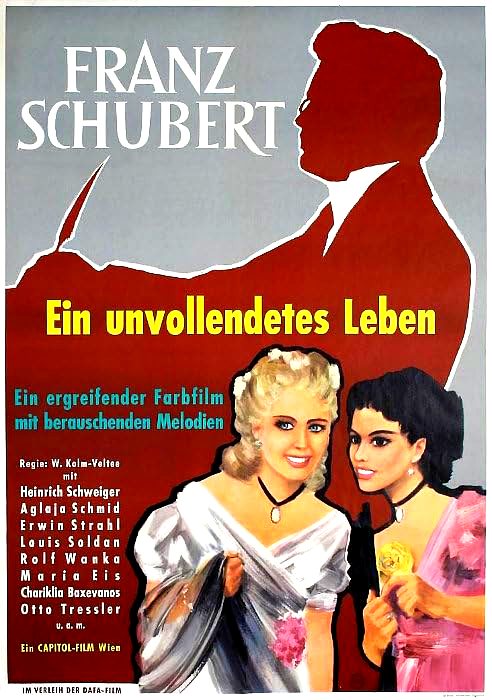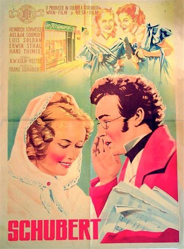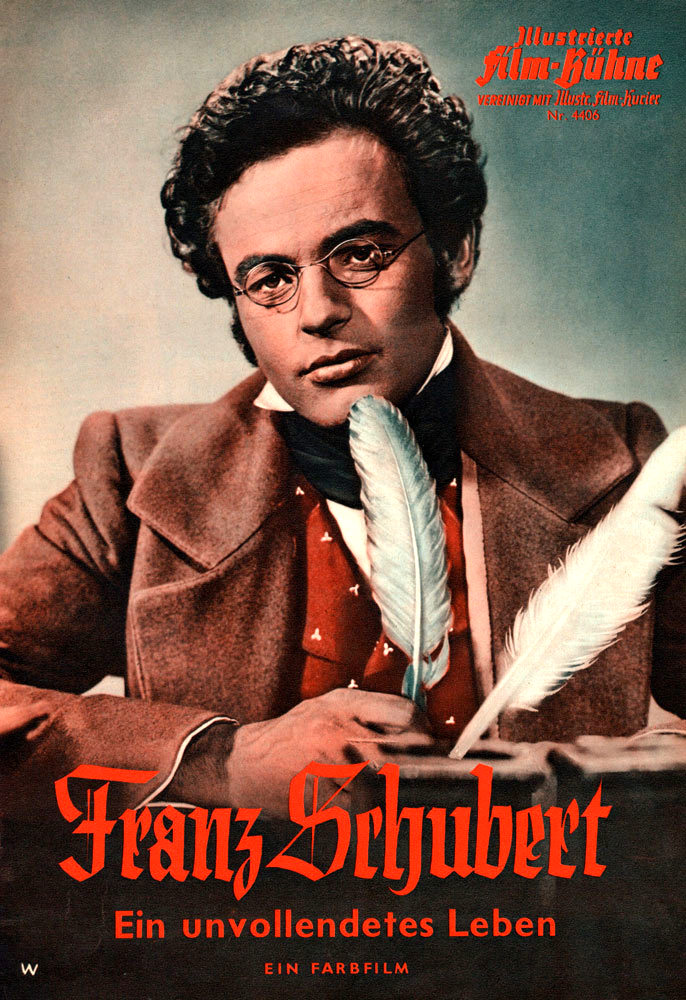 Artikelnummer 4621 Verfügbarkeit FRANZ SCHUBERT (1953) * with switchable English subtitles * Heinrich Schweiger: Franz Schubert Aglaja Schmid: Therese Grob Hans Thimig: Father Schubert Karl Bosse: Heinrich Grob Maria Eis: Madame Schechner Rolf Wanka: Franz Schober Louis Soldan: Moritz von Schwind Michael Janisch: Bergmann Anni Korin: Netty Erwin Strahl: Johann Mayerhofer Karl Mittner: Ferdinand Schubert Fritz Hinz-Fabricius: Court opera singer Vogl Richard Eybner: Secretary of the Court theatre Chariklia Baxevanos: Young girl Fritz Imhoff: Senta Wengraf Fred Hennings Otto Treßler Franz Pfaudler Alma Seidler Susanne Engelhart Karl Ehmann Marianne Gerzner Franz Herterich Gisa Wurm Geben Sie eine Produktbewertung ab. $15.99 Menge: In den Warenkorb Weitersagen Fragen zum Artikel? Zur Wunschliste hinzufügen DetailsVorliegende Bewertungen Franz Schubert, a talented composer, struggles to receive the recognition which many great artists fail to get in their lifetime. Supported by friends, he gives up his job as a teacher, and composes songs, symphonies, and operas. Exploited by publishers who grow rich off of him and rejected by critics as being too new and his works too "bizarre', he nevertheless does not give up the fight, even though crippling headaches and dizziness confront him at every turn. His love for the singer Therese Grob and his works like Der Erlkoenig and Winterreise mark his musical path through life. Franz Schubert, ein talentierter Komponist, kämpft um Anerkennung. Unterstützt von Freunden verlässt er den Lehrerberuf, komponiert Lieder, Sinfonien und Opern. Trotz Rückschlägen und Ablehnung durch Verleger und Theater gibt er nicht auf. Seine Liebe zur Sängerin Therese Grob und Werke wie „Der Erlkönig" und die „Winterreise" prägen seinen musikalischen Weg. DVD-R is in German with switchable English subtitles. Approx. 110 mins. See film sample for audio and video quality! Geben Sie eine Produktbewertung ab. Ähnliche Produkte DREI MÄDERL UM SCHUBERT (1936) $9.99 SCHUBERTS FRÜHLINGSTRAUM (1931) $9.99 < > Benutzer, die diesen Artikel gekauft haben, haben auch gekauft Neu UN ENFANT DANS LA FOULE (A Child in the Crowd)... $17.99 LA BELLE DE NUIT (1934) * with switchable En... $14.99 TWO FILM DVD: GLEN OR GLENDA (1953) + BLACK... $13.99 < >