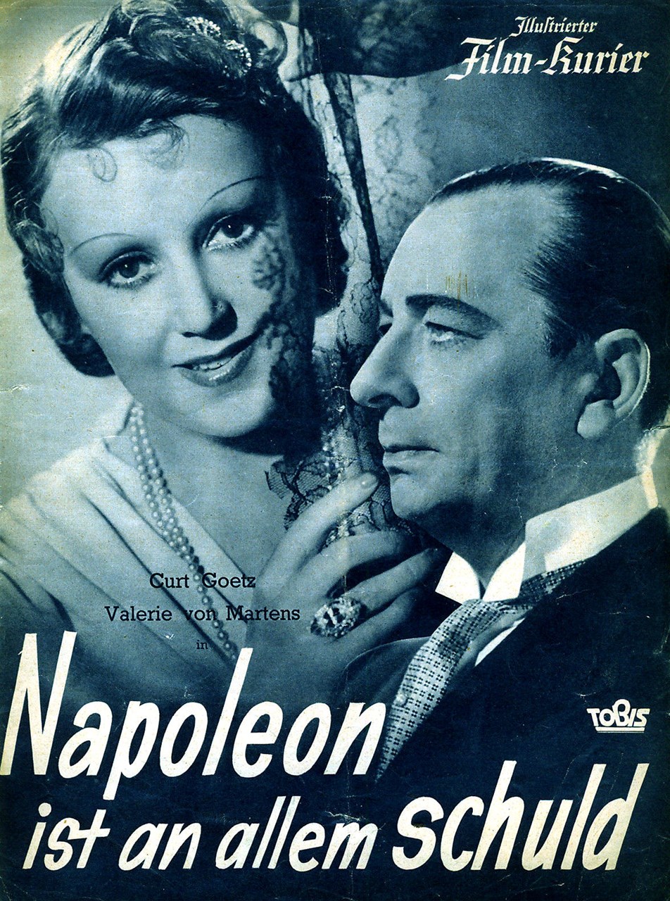 This film, made five years into Hitler's reign as Germany's chancellor, is a frothy comedy that would be considered an amusing, albeit insubstantial chestnut/time-passer, except for the context in which it first came into being. A mere precis of what it --- Napoleon ist an allem schuld --- is and what it's about only sounds slightly odd at first: okay, this is a semi-screwball comedy of sub-Lubitsch pedigree about an English lord who's obsessed with Napoleon; studies and gets into an amorous kerfuffle with a showgirl whilst visiting Paris for a Napoleon hobbyist's conference. In the midst of this kerfuffle, he takes the advice of an imaginary Napoleon, who's also played by the fellow who plays the English lord. The English lord's wife turns the strategic tables on her husband by pretending not only to be not bothered by the possible scandal of what's going on, but also ... well, suffice it to say that the wife's name is Josephine and that Waterloo is invoked.
